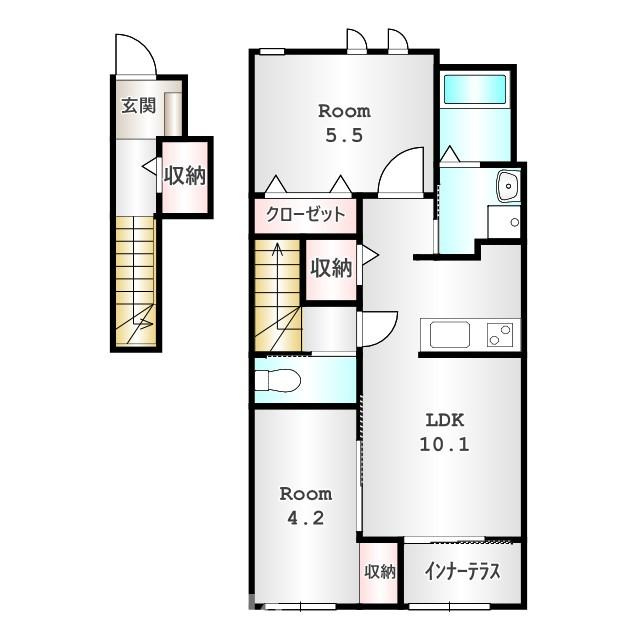 LDK 10.6帖 1室/洋室 4.2帖 1室 - 向き